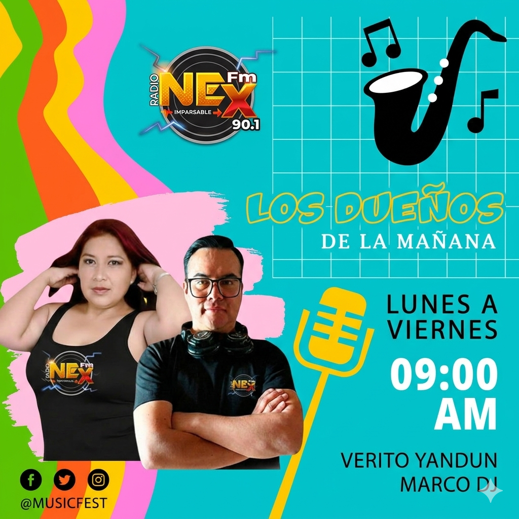 FOTO PROGRAMA DÍA HORA CANTA AMERICA LATINAYULIO EDUARDO LUN - VIER07:0009:00 "LOS DUEÑOS DE LA MAÑANA"VERITO YANDUN Y MARCO DJ LUN - VIER09:00 AM12:00 PM EL SHOW DE LA CHICHAMAO - MIX LUN - VIER12:0013:30 ROMANCES DE UNOMARCO TIPANTA LUN - VIER13:3015:00 MÁS QUE MIXDJ MARCO TIPAN LUN - VIER15:0018:00 RANCHENATOSMUSIC LUN - VIER18:0020:00